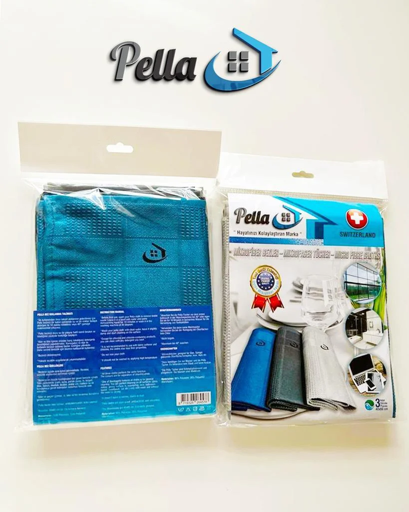 *İlk kullanımdan önce tekstil atıklarının giderilmesi için Pella bezinizi bir kabın içerisinde su ve bir miktar bulaşık deterjanı ile 10 dakika bekletiniz veya 40° çamaşır makinesinde yıkayınız.